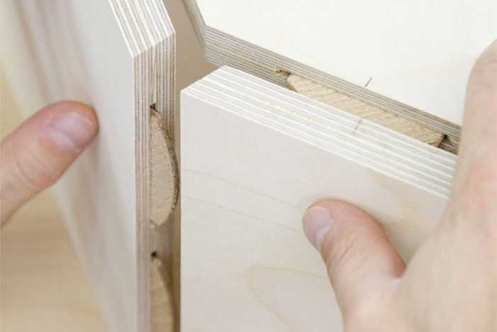 Lamello biscuits made of ca. 4mm thick Beech wood are elliptical in shape and come in different sizes. They can be used at intervals to connect 2 pieces of wood, using a lamello router to make the appropriate cuts in the material. They can be applied to join solid wood and wood based boards in simple butt joints or mitred joints. They add strength with additional glue area and help to align the workpieces forming an invisible, strong joint.