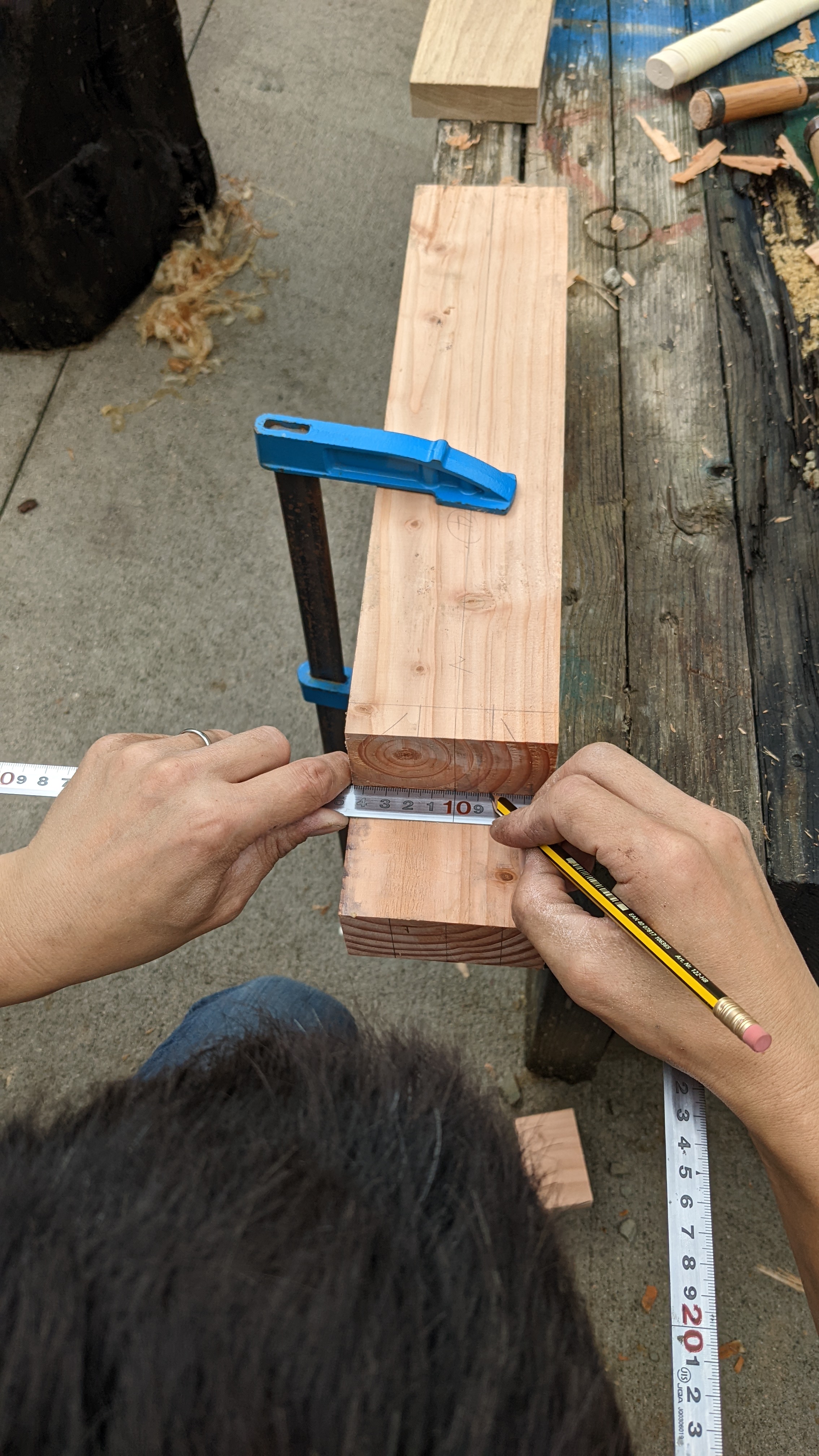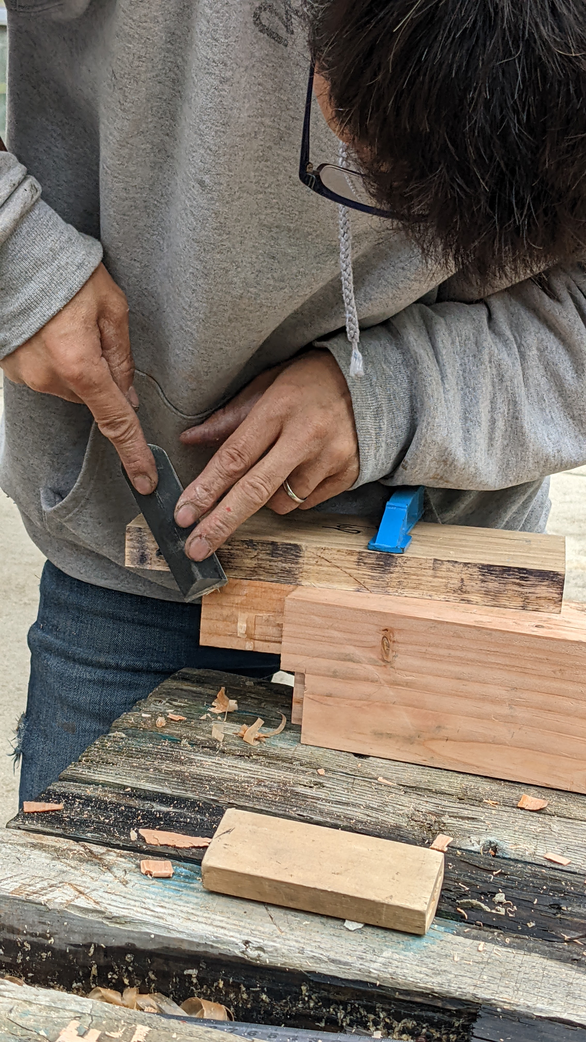 The marking and making of the joint was first demonstrated by Takami san, making sure to point out the correct technique and pressure points of each step.
