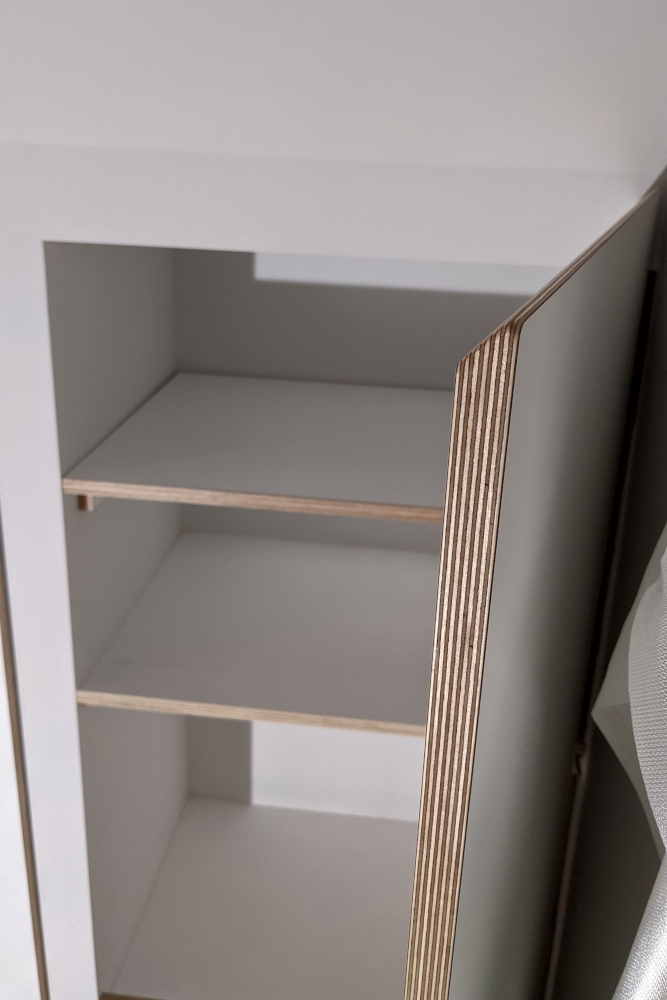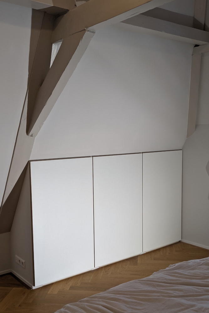 The installation price of the piece can vary depending on how the furniture piece fits into the customers house. In case of a free standing sideboard it might be just an hour of unpacking, hanging the doors and installing the drawers. In case of a fitted storage solution or a kitchen, it might even take multiple days.